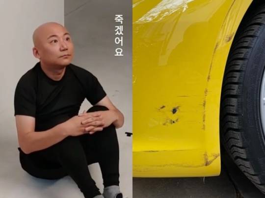 주호민은 지난 8일 자신의 인스타그램에 눈물을 흘리는 표정의 이모티콘과 함께 사진 한장을 올렸다. 사진에는 그가 3개월 전에 구매한 노란색 포르쉐 차량 아래쪽 펜더 부분이 심하게 긁힌 것으로 보이는 모습이 담겼다.