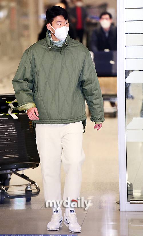 공항에서 바로 파주 NFC로 향하는 손흥민에게 공항 게이트 앞에 차량이 미리 준비 되었다. 조수석에 탄 손흥민은 뒷좌석의 자신의 가방에 여권을 집어 넣었다. 그 순간 뒷자리를 보면서 설레는 미소를 지었다. 그후 아버지 손웅정씨가 탑승했고 손흥민이 탄 차량은 공항을 빠져 나갔다.