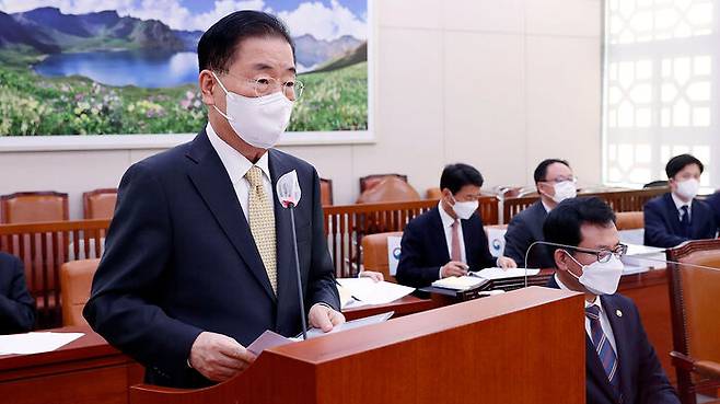 정 장관은 다만, 한미가 종전선언 문안까지 의논하고 있다는 이수혁 주미대사 발언과 관련한 무소속 김홍걸 의원에 질문에는 (한미는) "큰 원칙에 합의했고 형식과 내용을 어떻게 할 지에 대해 협의하고 있다"고 말했습니다.
