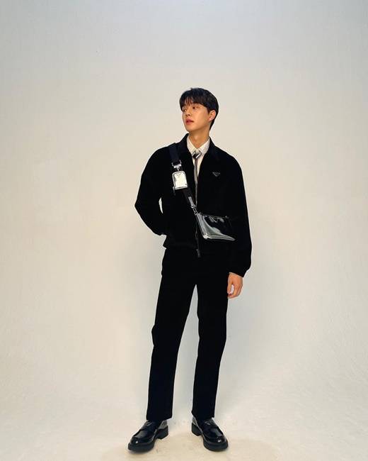 또 다른 사진에서는 검은색 블루종 재킷에 에나멜 크로스백을 매치해 감각적인 룩을 완성한 모습. 전문 모델 못지않은 피지컬로 화보 장인의 면모를 뽐낸 송강이다.