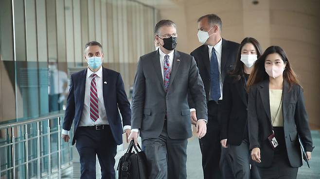 주한미국대사관은 공식 트위터에 한미 차관보 회동 사진을 올리고 "양국 간 동맹이 인도·태평양과 그 외의 지역에서 규범에 기반한 국제질서를 지속적으로 증진할 수 있는 방법에 대해 논의했다"고 설명했습니다.