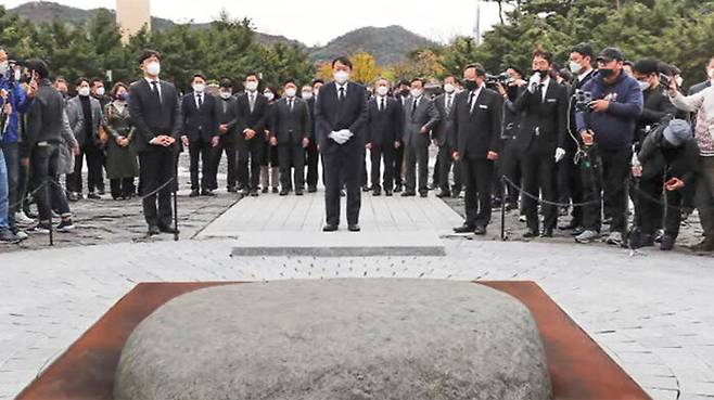 어제(10일) 광주에 갔던 윤석열 국민의 힘 대선후보는 오늘은 목포에 있는 김대중 전 대통령 기념관을 찾은 데 이어, 봉하마을에 가서 노무현 전 대통령 묘역을 참배했습니다.