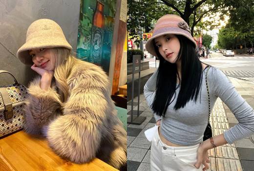 캐주얼, 스포티 등 어떤 코디에나 범용성이 좋은 버킷햇. 손나은은 자연스럽게 풀어헤친 머리에 브라운 니트햇을 착용해 청순하게 연출하는가 하면 박산다라는 깔끔한 히메컷에 나일론 재질 모자로 쿨하고 스타일리시한 매력을 배가시켰다.