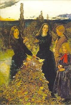 스산한 가을 저녁, 해가 뉘엿뉘엿 넘어가는 하늘을 배경으로 네 명의 소녀가 마당에서 끌어모은 낙엽을 태우고 있다. 청순하고 아름다운 소녀들의 모습과 무덤을 연상시키는 낙엽 더미가 타들어가는 장면이 인상적인 대비를 이룬다. 19세기 영국을 대표하는 화가 존 에버렛 밀레이(1829~1896)의 ‘가을 낙엽’(1856년)이다.