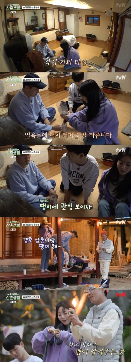 식사 후 더치 커피를 내리던 김대명은 배현성과 조이현에게 "팽이를 할 줄 아냐"고 물어보며, "나가서 경호 삼촌이랑 팽이 놀이를 하라"고 제안했다. 정경호와 조이현은 마당에서 팽이를 치며 휴식 시간을 보냈다.