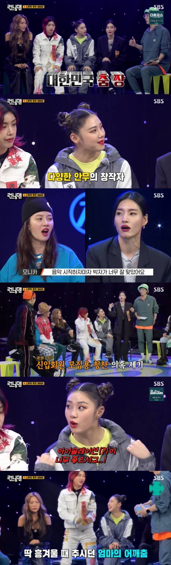 이어 유재석은 모니카에 대해 "'스우파' 이후 모니카에게 혼나고 싶은 모임이 생겼다더라"라며 궁금해했고, 모니카는 "혼내는 게 제 캐릭터다. 저한테 혼이 나면 공무원 시험 붙을 거 같다는 그런 말들이 있더라"라며 자랑했다.