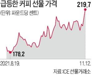 커피 주요 산지의 이상 기후와 글로벌 물류 대란이 겹쳤기 때문이다.