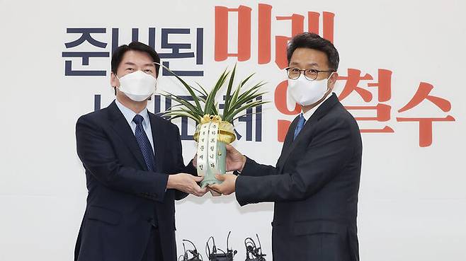 이 수석은 오늘(15일) 국회를 찾아 후보 선출을 축하하는 의미를 담은 문 대통령의 난을 안 후보에게 전달했습니다.