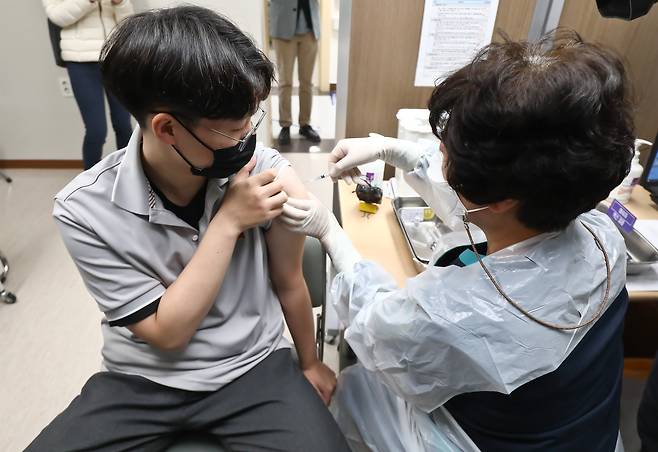 | ▲ 10월 18일 오전 서울시 양천구 홍익병원에서 16∼17세 청소년이 신종 코로나바이러스 감염증(코로나19) 백신접종을 받고 있다 |