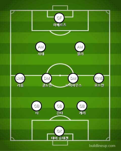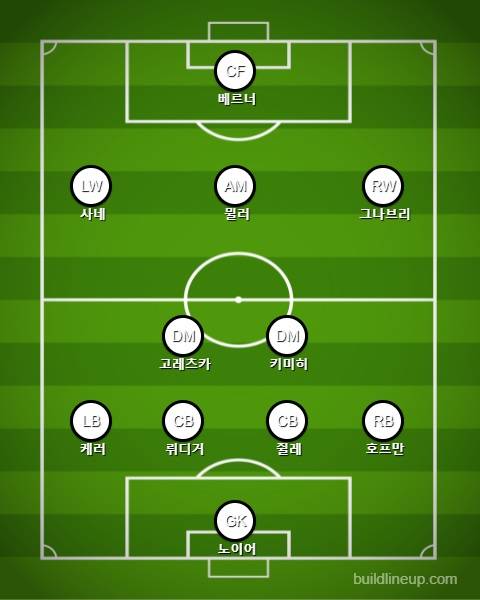 13번 뮐러, 18번 호프만, 5번 케러, 20번 라움(Powered by OPTA)