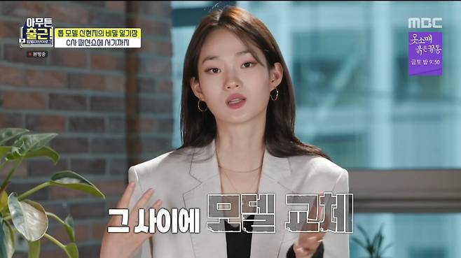 신현지는 "교체 모델이 제 옷을 입고 있는 것 봤는데 눈물이 났다. '쇼에 서고 싶다'는 간절한 모습에 캐스팅 디렉테가 대타 모델에게 여분의 옷을 입히고 저는 제 옷을 찾아 입었다"고 말했다.