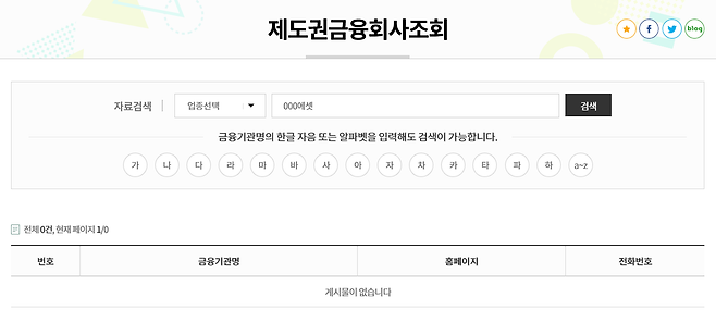 업체명은 메일 주소에 적혀있었습니다. 정식 인가를 받은 업체인지 금감원 사이트에서 조회해 보자 검색이 되지 않았습니다. 역시나 미등록 불법 업체였던 겁니다.