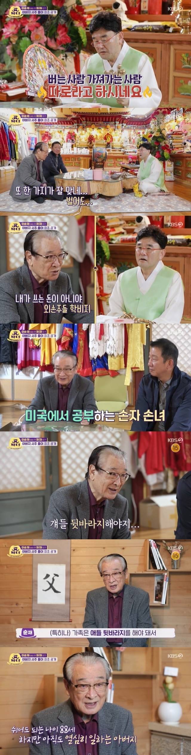 이순재는 크게 놀랐다. 이순재는 "4살 때 부모님과 떨어져 서울로 와 조부모 손에 자랐다. 또 한 가지, 벌어도 내가 쓰는 돈이 아니다. 전부 외손주들 공부시키느라고. 미국에서 공부하기 때문에 뒷바라지를 한다"고 고백했다.