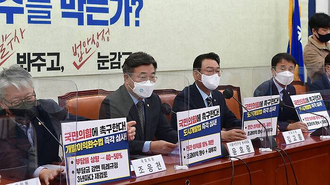 더불어민주당이 국민의힘을 향해 개발이익환수 관련법 심사에 즉시 동참하라고 촉구했습니다.