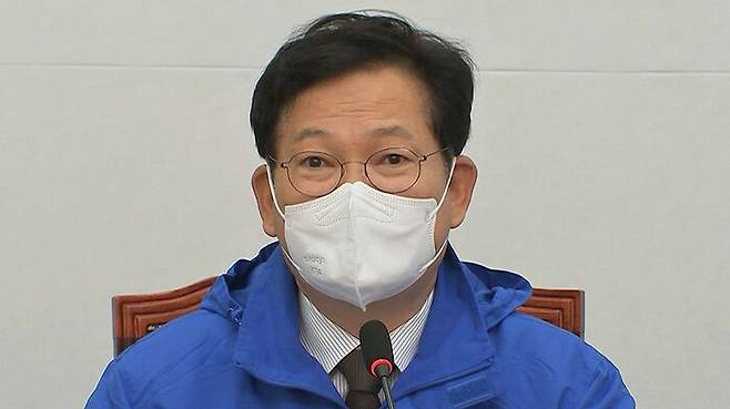 더불어민주당 송영길 대표는 이재명 대선 후보가 전국민 재난지원금을 사실상 철회한 것과 관련해 "현재 예산 회계상, 여러 절차상 불가피하게 조정한 것"이라고 말했습니다.
