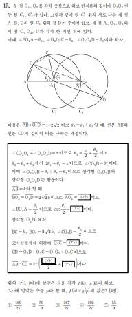 고난도 문제로 지목된 15번은 삼각함수를 활용한 코사인 법칙과 원주각의 성질을 이용해 풀어야 하는 빈칸추론 유형의 문제다. 수능에 앞서 진행된 6월과 9월 모의고사에서 이와 같은 빈칸추론 유형은 출제되지 않았다. 또 삼각함수를 활용한 문항도 쉽게 나왔던 터라 수험생들의 체감 난도가 더 높았던 것으로 보인다.