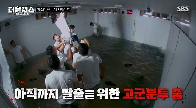 상위권 팀은 의외로 침착한 대처가 돋보였다. CCT 김창완이 전날 막사에 입성할 때부터 컨테이너의 재질과 구조에 이질감을 느끼고 물에 잠기도록 만들어진 방이라는 사실을 눈치채며 미션을 어느 정도 예측했기 때문이었다. 덕분에 상위권 팀은 팀워크를 발휘하여 대원들이 힘을 합쳐 탈출구를 찾기 시작했고, 천장을 뜯어내자 의문의 열쇠뭉치가 쏟아졌다. 하지만 열쇠가 너무 많아서 대원들은 제한시간 내 진짜 키를 찾아내는 데 막막함을 느꼈다.
