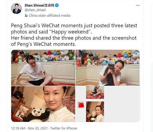 CGTN 기자는 사진과 함께 올린 글에서 "펑솨이의 친구가 내게 이들 사진을 보내줬다"고 입수 경위를 설명했습니다.