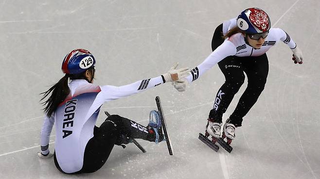 부상을 털고 복귀한 '에이스' 최민정은 아쉽게 실격됐습니다.
