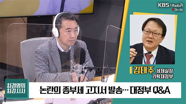 ▷ 최경영 : 정부가 2021년분 종합부동산세를 고지했습니다. 전체 고지 인원은 94만 7천 명, 부담 세액은 5조 7천억 원 규모. 기획재정부 김태주 세제실장 연결돼 있습니다. 안녕하세요.