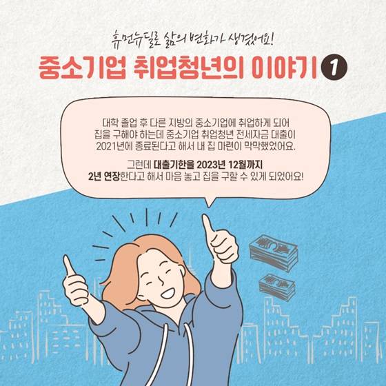 대학 졸업 후 다른 지방의 중소기업에 취업하게 되어 집을 구해야 하는데 중소기업 취업청년 전세자금 대출이 2021년에 종료된다고 해서 내 집 마련이 막막했었어요.