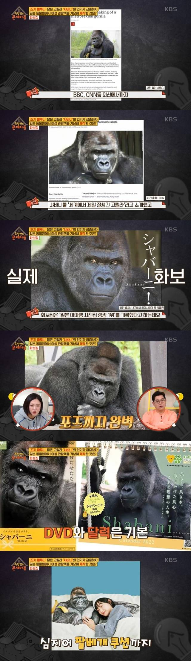 고릴라 샤바니는 BBC, CNN 등 외신에서도 ‘세계에서 제일 잘 생긴 고릴라’로 소개됐고 화보집은 사진집 랭킹 1위를 기록하기도 했다고 전해져 거듭 놀라움을 안겼다. (사진=KBS 2TV ‘옥탑방의 문제아들’ 캡처)