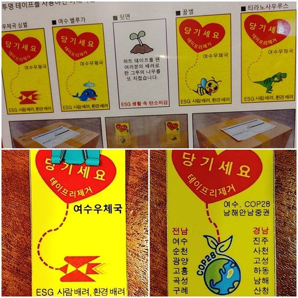 김씨는 하트테이프에 COP28 여수유치 문구를 넣어 전국에 택배를 보내며 홍보에 앞장섰다. 또 하트테이프를 지인들과 미용실, 건어물 가게, 김치공장에 보냈더니 반응이 좋았다. 공룡같은 다양한 캐릭터를 넣으니 택배상자를 본 아이들이 빨리 테이프를 떼려고 난리다.