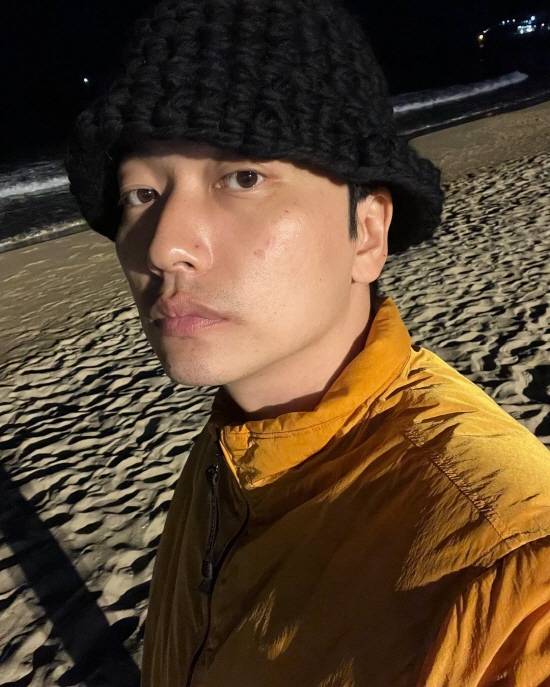 사진 속 이동휘는 바닷가에서 셀카를 촬영하고 있다.