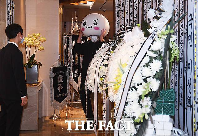 '베충이' 탈 쓰고 전두환 빈소 조문 온 남성 [TF사진관]