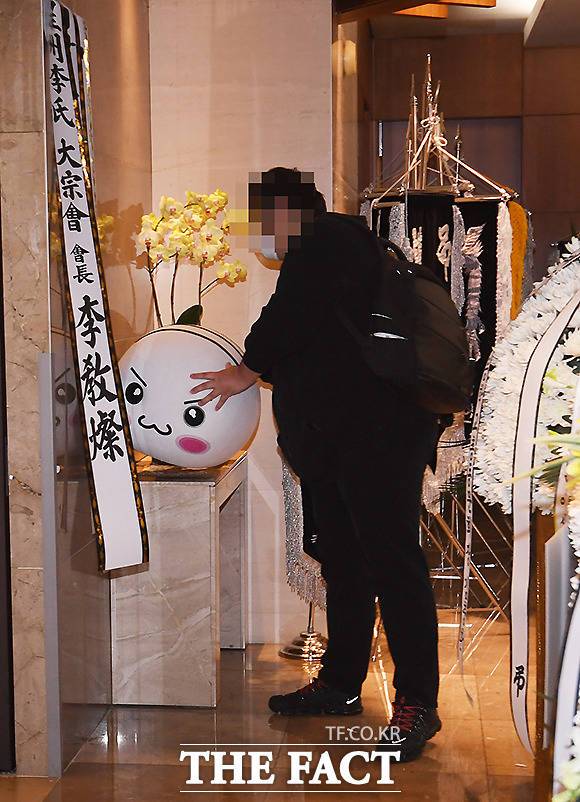 [더팩트ㅣ이새롬 기자] 대한민국 제11대, 12대 대통령을 역임했던 전두환 씨의 빈소 조문 이틀째인 24일 일베캐릭터 '베충이' 탈을 쓴 남성이 서울 서대문구 세브란스병원 신촌장례식장에 마련된 고인의 빈소를 찾아 조문하고 있다.