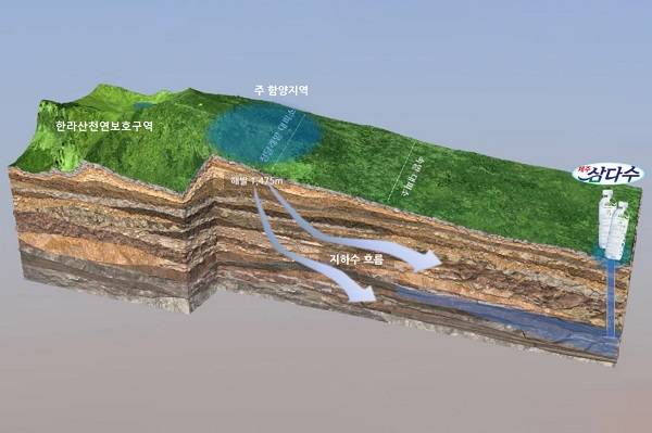 수원지는 한라산 해발 1450m에서부터 지하 420m까지 화산송이와 현무암이 분포된 지층을 통과하며 자연 정수된 물이다. 즉 제주삼다수는 수원관리가 핵심인 셈이다.