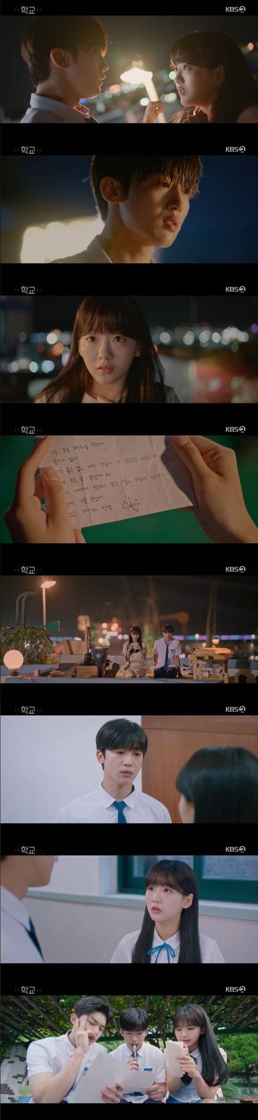 25일 오후 방송된 KBS2 새 수목드라마 '학교 2021'에서는 공기준(김요한 분)과 진지원(조이현 분)이 친구의 극단적인 선택을 막으려고 애쓰는 모습이 그려졌다.