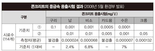 ● 환경부 “시멘트를 식수용 설비로 써도 중금속에 안전”