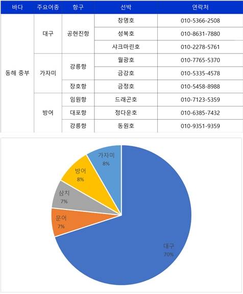 동해 남부에서는 영일만항, 읍천항 감포항을 중심으로
