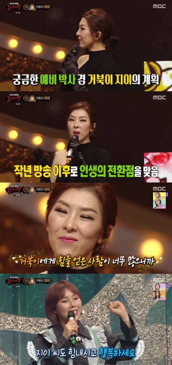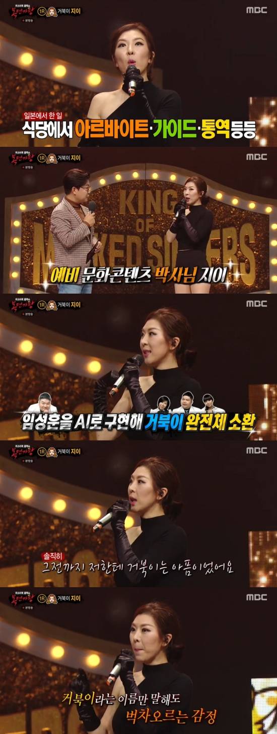 28일 방송된 MBC '복면가왕'에서는 'I'm a 가왕 lady I'm a 가왕 lady 비욘세'의 정체가 지이로 밝혀진 장면이 전파를 탔다.