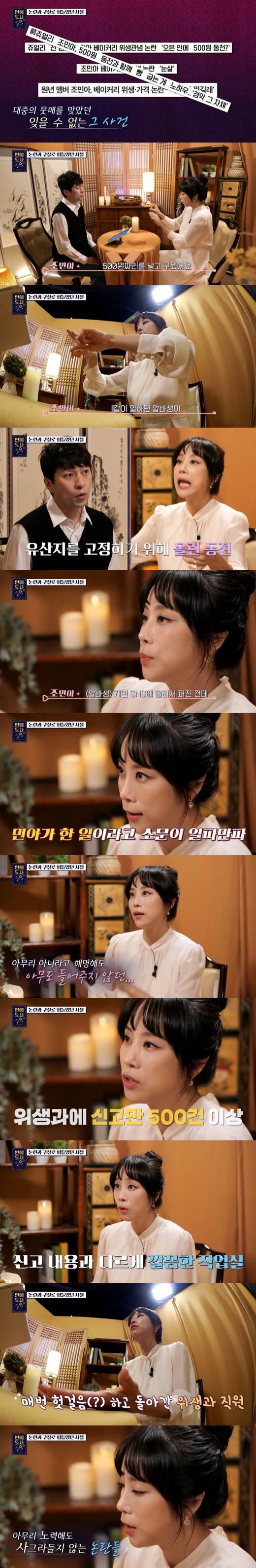 그러면서 조민아는 "같이 일하던 아르바이트생이 500원짜리를 (오븐에) 넣고 구웠다. 유산지에 고정한다고"라며 "그것도 사실 아르바이트생 본인이 개인 SNS에 올린 게 퍼진 건데, 내 SNS에 내가 했다 그렇게 된 거다. 하나하나 아니라고, 다 아니라고 얘기를 했는데도 아무도 안 들어주더라"라고 억울함을 토로했다.