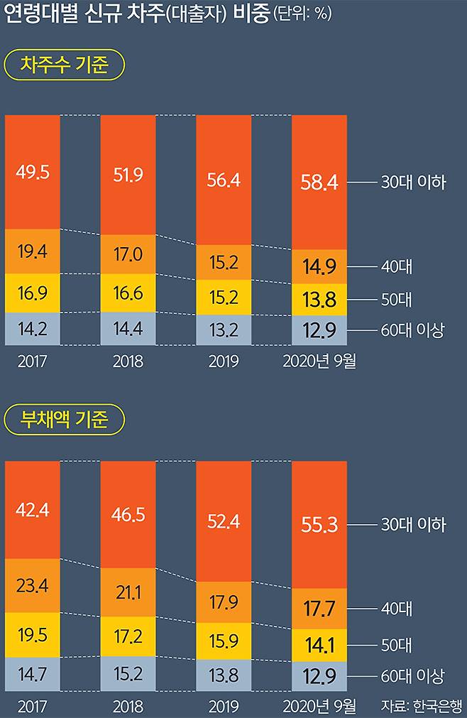 하나금융경영연구소는 ‘코로나 이후 청년층 부채 현황과 시사점’ 보고서에 “청년층 부채 문제가 투기 문제와 동일시되면서 코로나19 이후 청년들이 취업난으로 채무불이행자로 전락하는 실상은 관심받지 못하고 있다”고 꼬집었다. 코로나19 이후 청년 구직자의 구직기간이 늘어나고, 청년노동자의 무급휴직, 해고, 일거리 감소 등으로 고용상황이 악화되면서 청년 소득이 급감하고 있다는 분석이다.