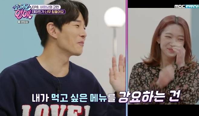 맛집에서 줄 서서라도 기다리는지 묻는 질문에는 "처음 가는 식당이면 안 기다리는데 먹어봤고 그 가치가 있으면 기다린다"고 답했다. (사진=MBC에브리원 '끝내주는 연애' 캡처)