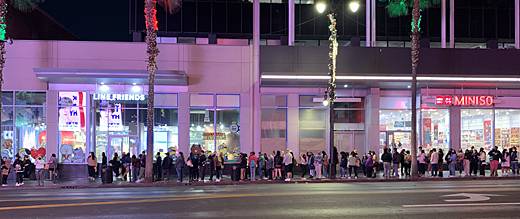 마침 '라인 프렌즈' 맞은편 명예의 거리 '차이니즈 시어터'에선 중국 '아미' 팬들이 마련한 방탄소년단 멤버 뷔의 생일 축하 광고가 대형 LED 전광판에서 흐르고 있었다. '라인 프렌즈' 입장을 설레며 기다리는 '아미'들에겐 전광판 속 뷔와 기념사진을 찍는 게 또 다른 즐거움이었다.