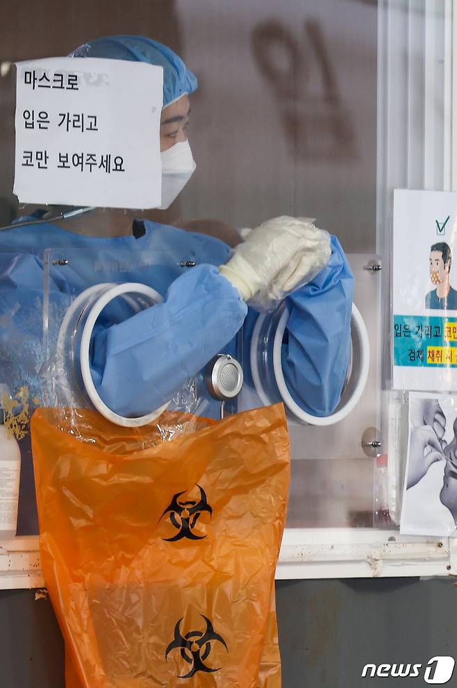 (서울=뉴스1) 안은나 기자 = 신종 코로나바이러스 감염증(코로나19) 신규 확진자가 5266명 발생하며 또 다시 역대 최다를 기록한 2일 오전 서울역 광장에 마련된 중구 임시선별검사소에서 의료진이 검체채취를 하기 위해 기다리고 있다. 2021.12.2/뉴스1