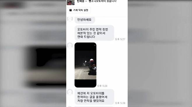 오토바이 뺑소니 사고를 당한 피해자 가족이 중고거래 애플리케이션을 통해 범인을 잡아내 화제입니다.