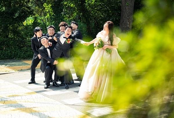 공개된 화보엔 환한 미소가 닮은 이동빈·김란영 예비 부부와 이날 들러리로 촬영장 분위기를 띄운 SBS 13기 공채 개그맨 심영보, 유룡, 홍현우, 김영조, 이신명의 모습이 담겼다.