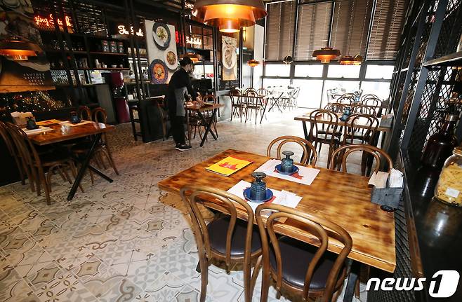 3일 오후 대전 유성구에 위치한 한 식당에서 직원이 매장 정돈을 하고 있다. 2021.12.3/뉴스1