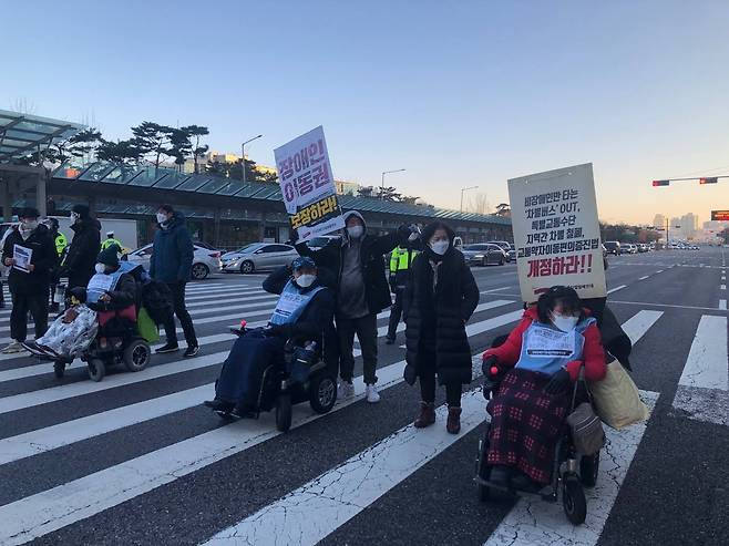 일부 장애인들은 여의도 버스환승센터에서, 마포구 방향 도로를 막고 기습 시위를 벌이기도 했습니다.