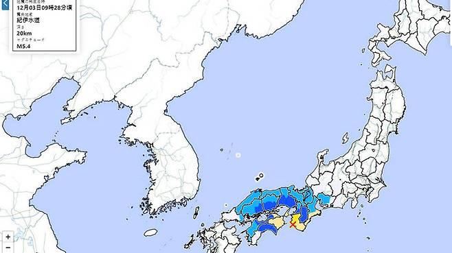 이어 3시간도 지나지 않은 오전 9시 28분쯤 와카야마현과 도쿠시마현 사이 해협으로, 후지고코에서 500㎞가량 떨어진 기이스이도에서 규모 5.4의 강진이 뒤따랐습니다.