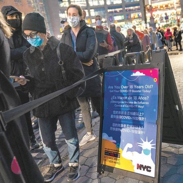 美도 오미크론 확산… 부스터샷 접종 행렬 2일(현지 시간) 미국 뉴욕 맨해튼 센트럴파크 인근 코로나19 백신 접종소에서 시민들이 줄을 서서 차례를 기다리고 있다. 뉴욕=AP 뉴시스