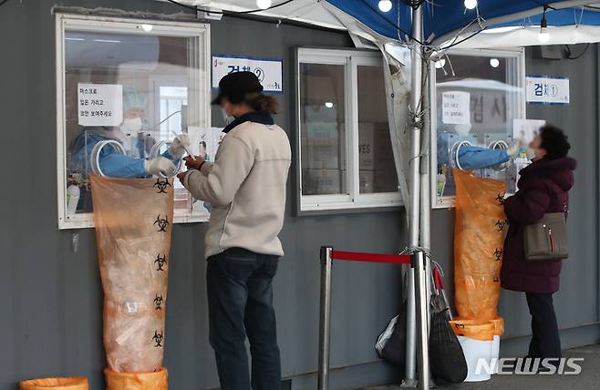 [서울=뉴시스] 박미소 기자 = 코로나19 신규 확진자 수가 5352명으로 집계된 4일 오전 서울 중구 서울역 임시선별검사소에서 의료진들이 검체 채취를 하고 있다. 위중증 환자는 전날(3일) 736명에 이어 연일 역시 최다 기록을 갈아치우고 있다. 2021.12.04. misocamera@newsis.com