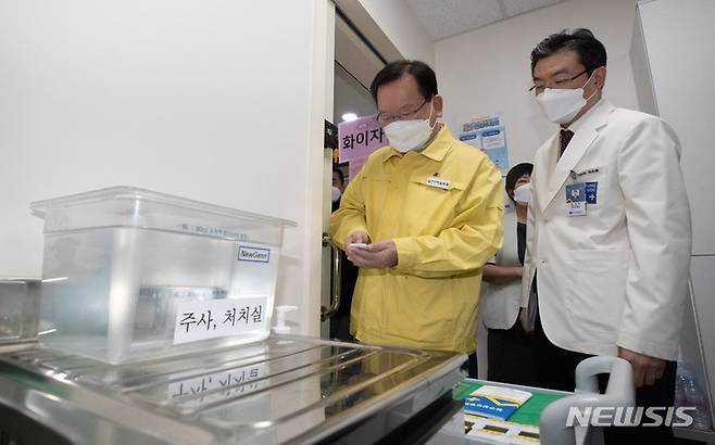 코로나 백신 3차 접종 현장방문 나선 김부겸 총리