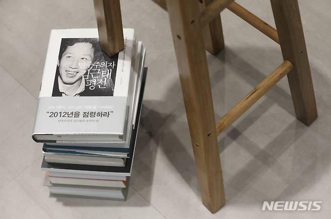 [서울=뉴시스] 고승민 기자 = 4일 개관한 서울 도봉구 김근태기념도서관에 김근태 전 열린우리당 의장을 다룬 책으로 만든 예술작품이 설치돼 있다. 2021.12.04. kkssmm99@newsis.com