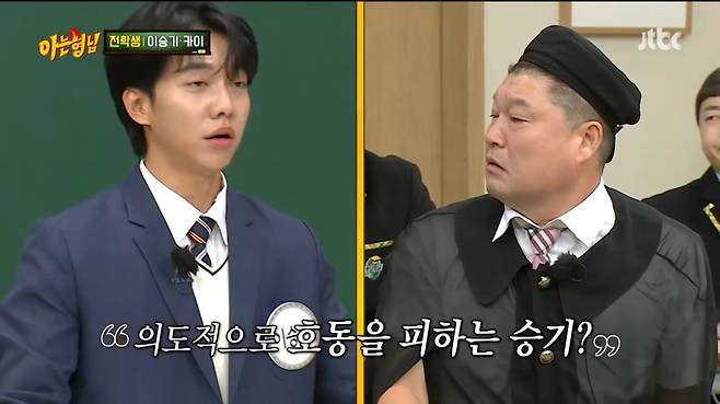 이날 '호동 사관학교 출신' 이승기의 등장에 강호동은 "승기가 형 생각 나서 직접 방송반에 연락해서 출연한 거"라고 말했다. 하지만 이승기는 "그건 아니"라고 딱 잘라 말했다.